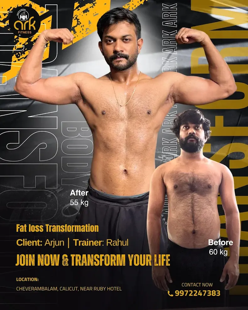 Step into Calicut’s most exclusive fitness destination. ARK Fitness’s all-new ultra-luxury gym in Chevayur. Every element whispers sophistication, rich wood textures, ambient lighting, and bespoke finishes. From sauna-grade steam rooms to glass-encased recovery sanctuaries, it’s where elegance meets performance.